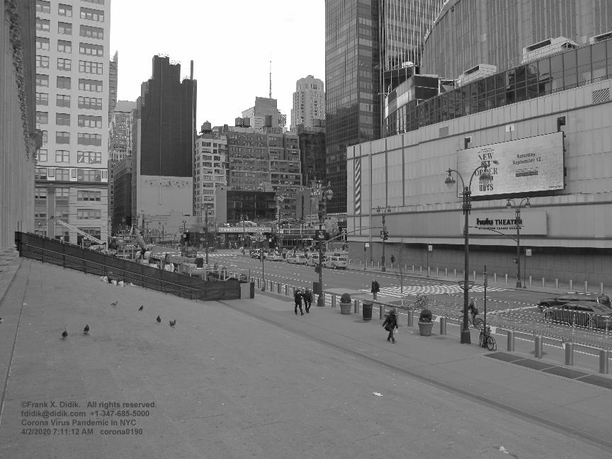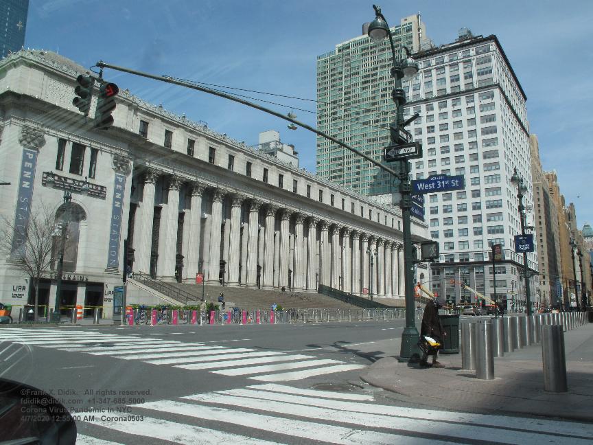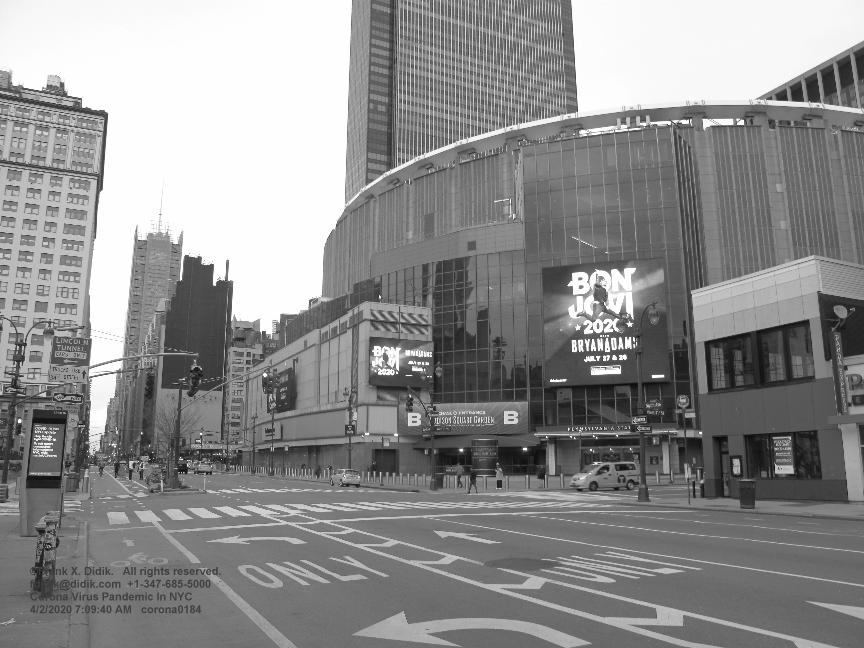 Empty streets in front of Madison Square Garden on Eight Avenue.