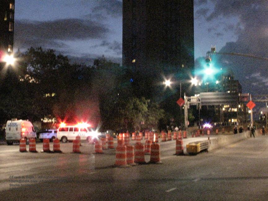 The entrance to the Manhattan Bridge is now protected from disruptive rioters.