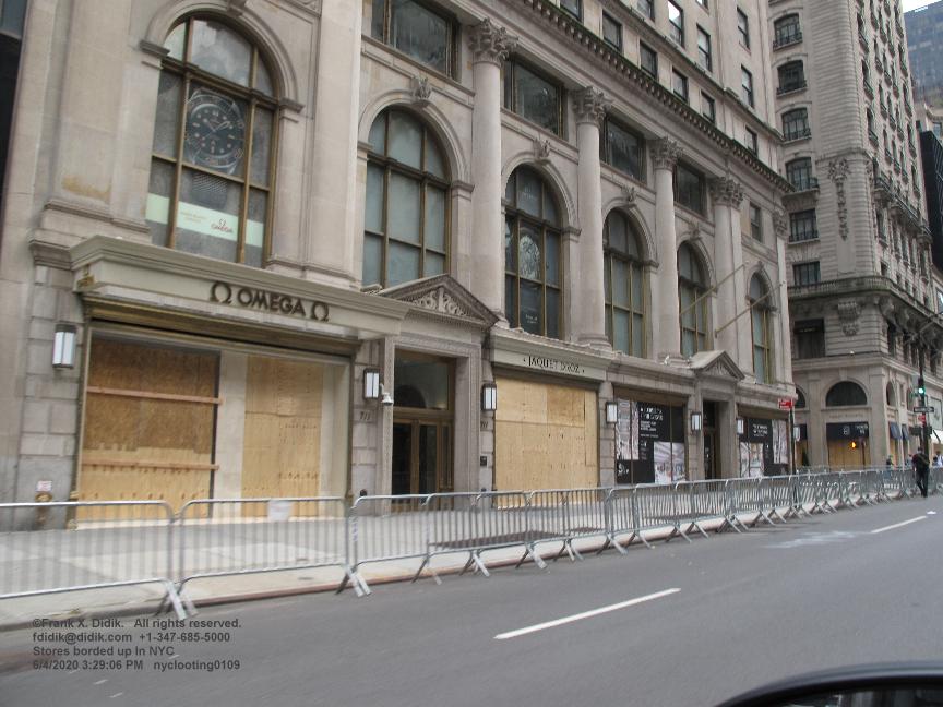 It is sad to see that the stores along beautiful Madison Avenue and Fifth Avenue are forced to cover their windows to protect themselves from looters and rioters.