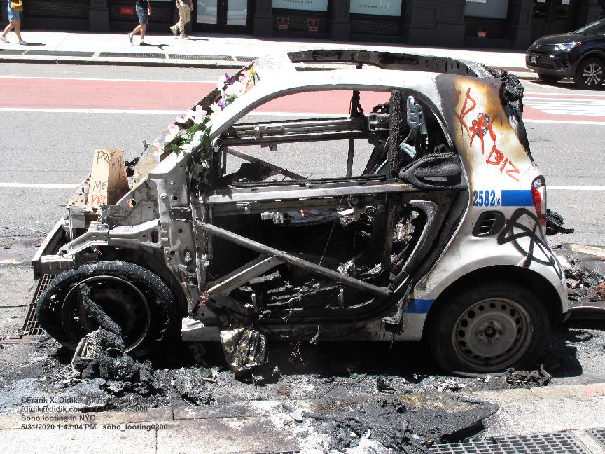 NYPD Smart Car.was burnt out the night of May 30, 2020.
